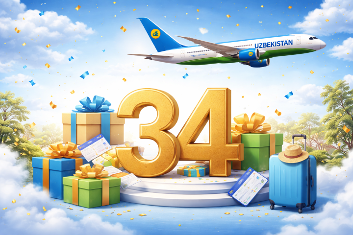 Zum 34. Geburtstag von Uzbekistan Airways gibt es ein besonderes Geschenk für alle Reisenden! Nur am 28. Januar 2026 erhalten Sie 30 % Rabatt auf den Flugtarif auf allen Strecken…