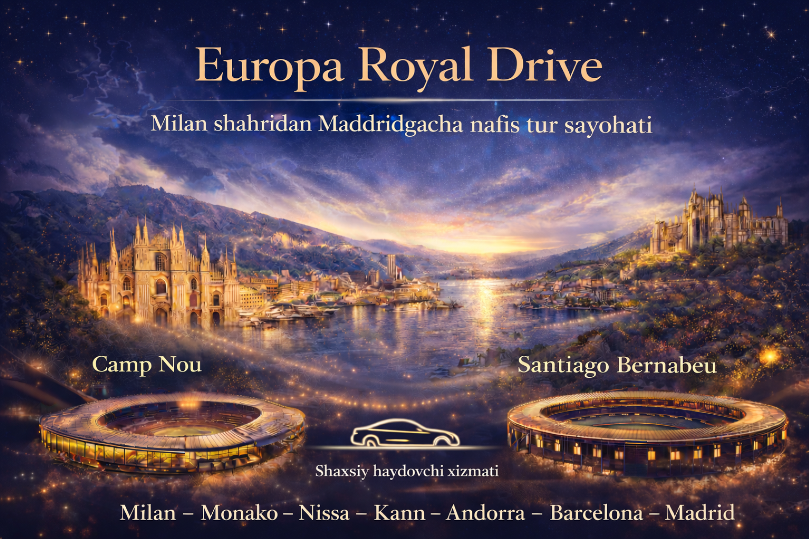 Europa Royal Drive — bu Milandan Madridgacha bo‘lgan 11 kunlik oliy darajadagi sayohat bo‘lib, sayohatni shaxsiy san’at sifatida qadrlaydigan insonlar uchun puxta tuzib chiqilgan. Ushbu yo‘nalish ommaviy sayyohlik andozalariga emas, balki Yevropaning tanlab olingan ramziy maskanlarini uyg‘un va nafis yagona manzara sifatida bog‘lash tamoyiliga asoslanadi.